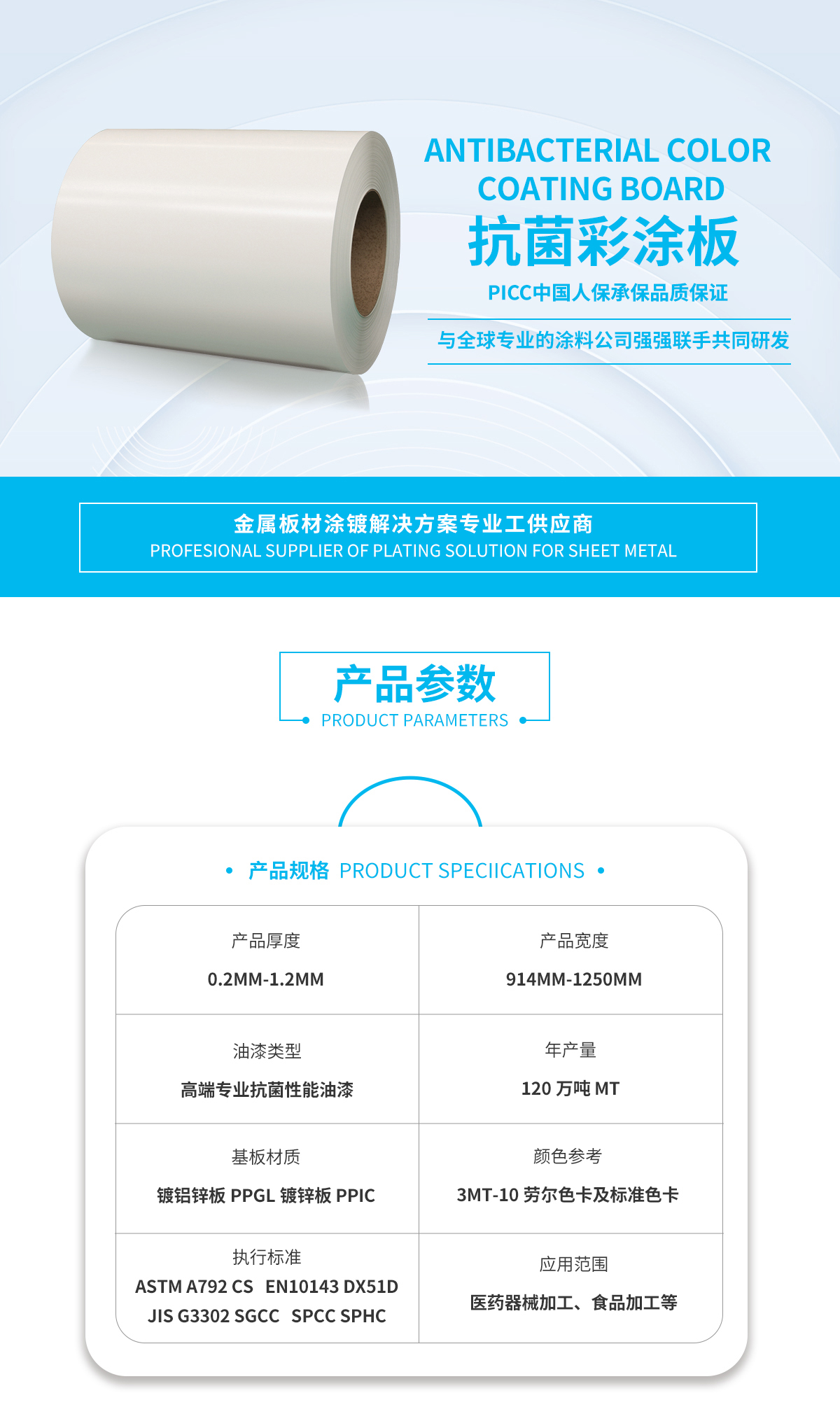 當前位置:首頁 > 產(chǎn)品展示 >>  抗菌彩涂板