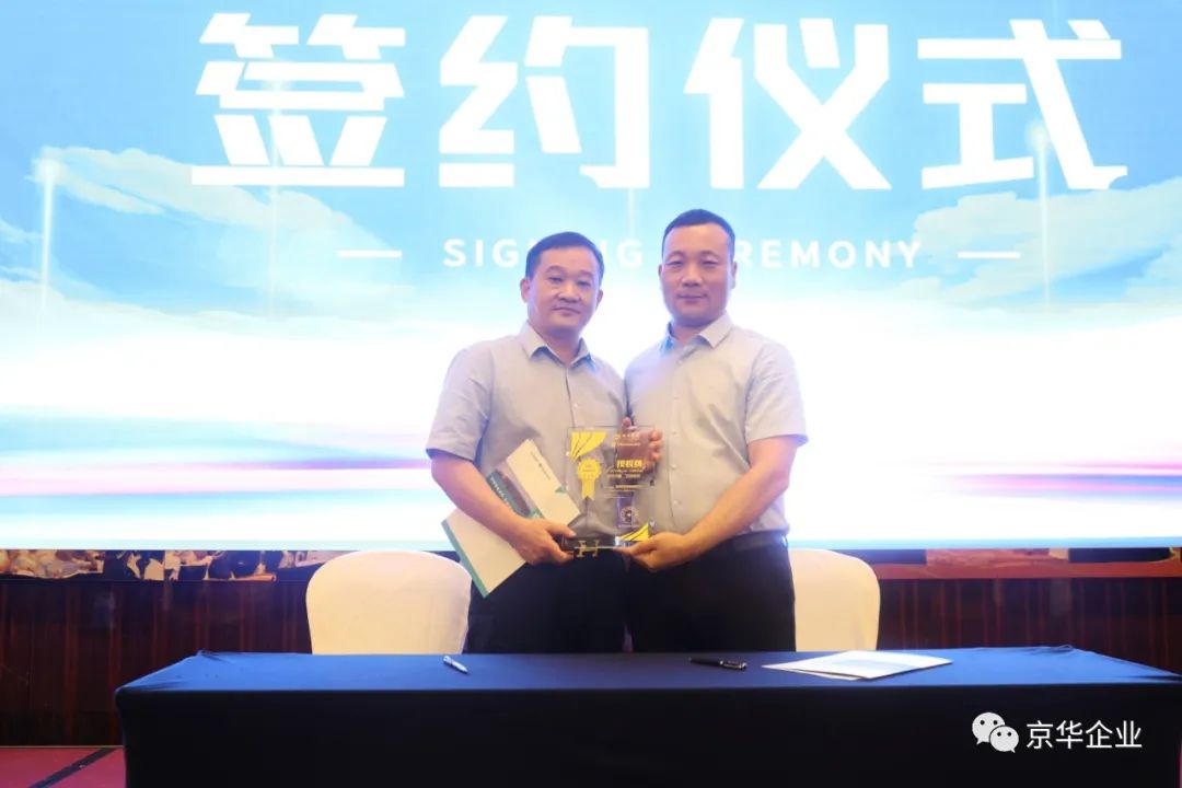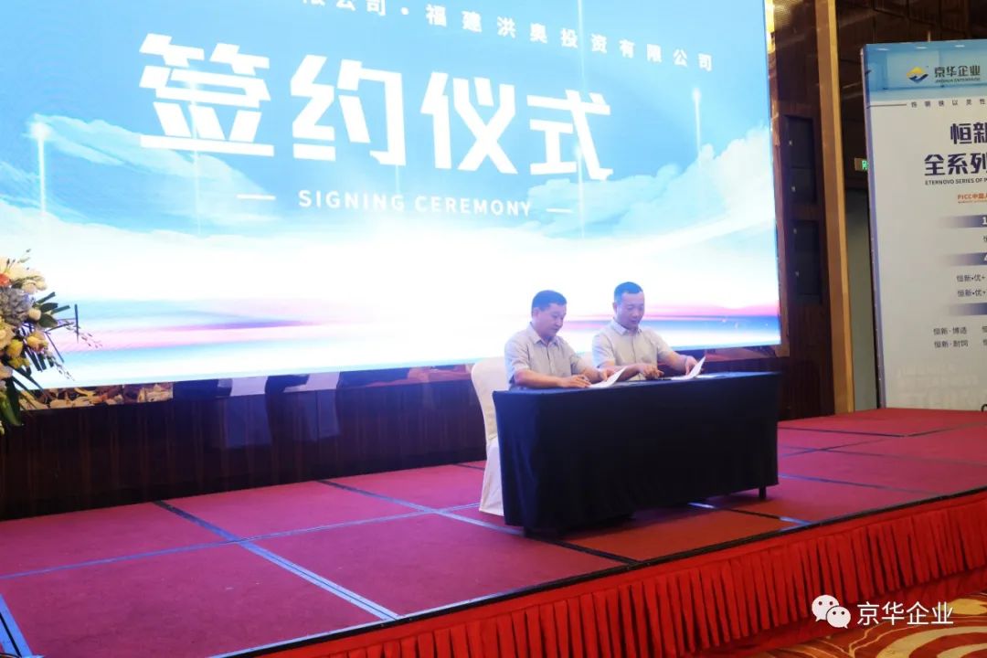 在現(xiàn)場(chǎng)嘉賓們的共同見(jiàn)證下,京華企業(yè)和榮德勝在現(xiàn)場(chǎng)舉行了“恒新“品牌系列彩涂產(chǎn)品的授權(quán)經(jīng)銷商簽約典禮。