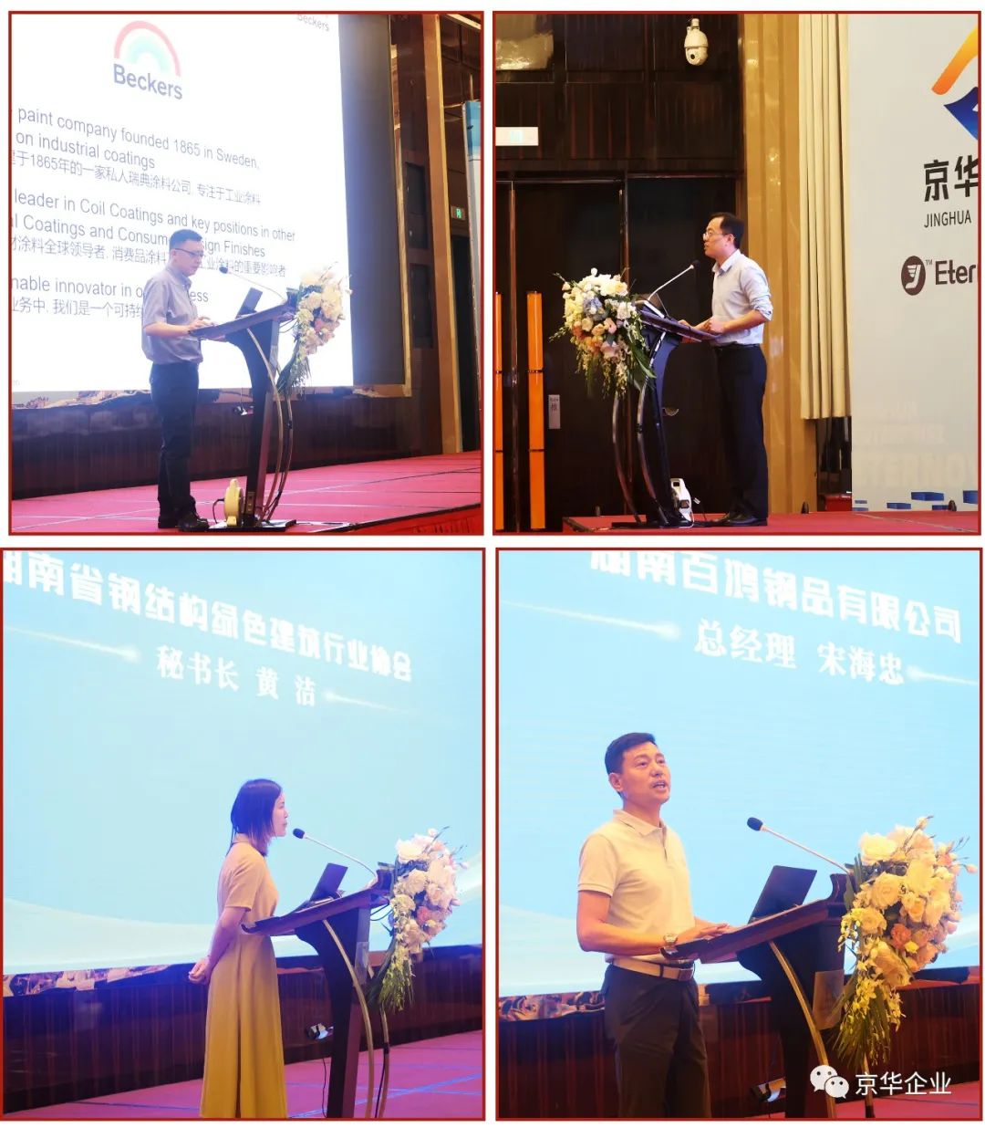 “恒新“合作方國(guó)際卷材涂料領(lǐng)導(dǎo)品牌的代表;蘭格鋼鐵網(wǎng)的李釗副總經(jīng)理;湖南省鋼結(jié)構(gòu)綠色建筑行業(yè)協(xié)會(huì)秘書長(zhǎng)黃潔女士;發(fā)表了精彩的演講。湖南百鴻鋼品有限公司總經(jīng)理宋海忠是京華企業(yè)彩涂產(chǎn)品的老用戶,代表廣大湖南地區(qū)的客戶發(fā)言。