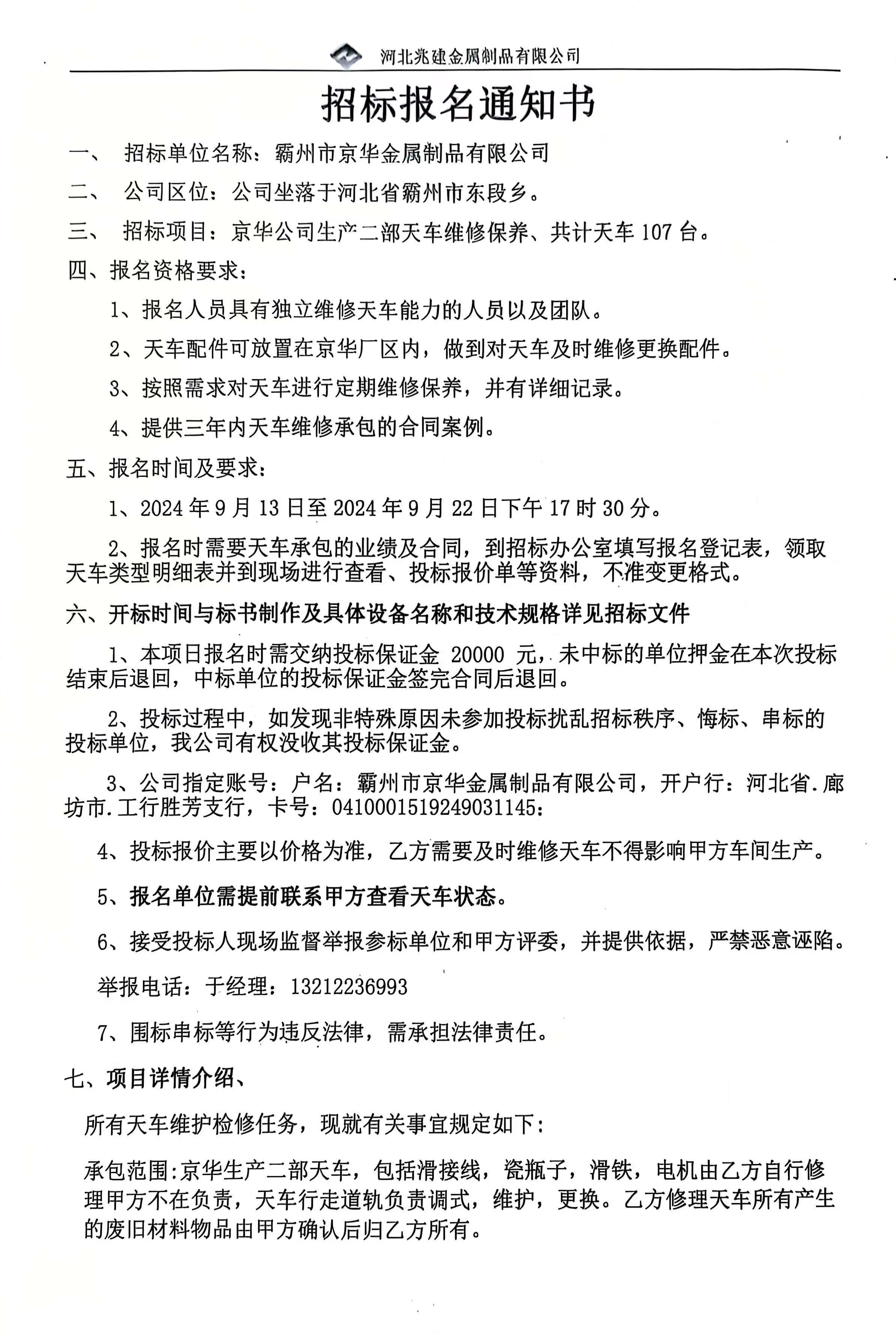 • 招標(biāo)業(yè)主: 河北兆建金屬制品有限公司